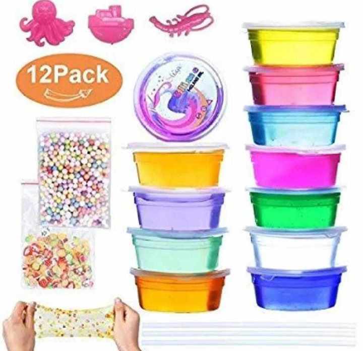 Crystal Clay Soft Slime Transparent Magic Mud Non Toxic Pack Of 12 Assorted Colors