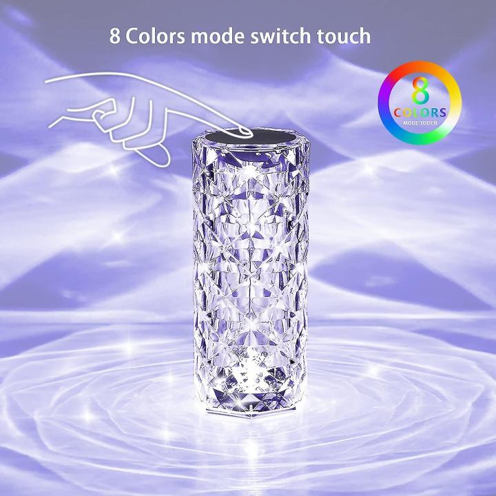 Crystal Table Lamp With 8 Rgb Color, Remote Control, Rechargeable Table Lamp With Usb Charging Port