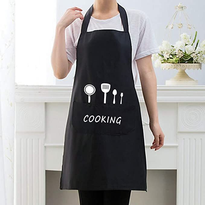 Cute Printed Black Waterproof Adjustable Kitchen Apron With Big Pockets