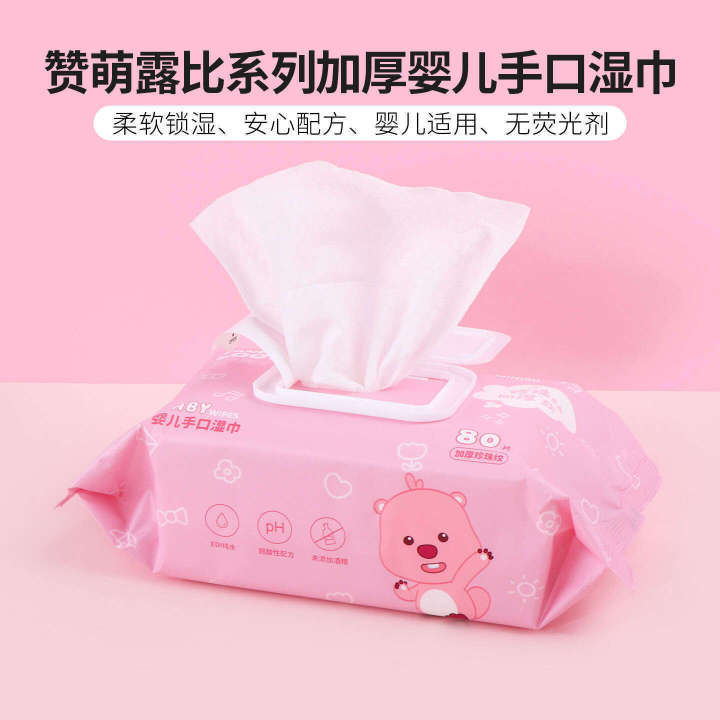Cute Ruby Series Thickened Baby Hand and Mouth Wipes 80 Sheets Portable for Children Cleaning