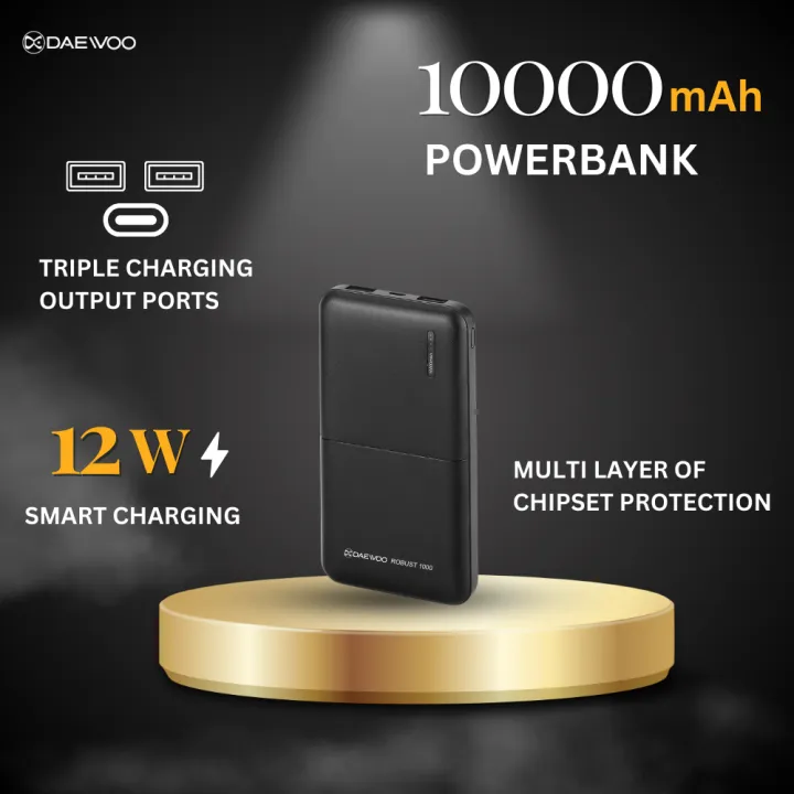 Daewoo Robust 1000 | 10000mAh Power Bank | 12W Smart Charging | Type C Output Input | 1 Year Warranty | Lithium Polymer | Compact Pocket Size