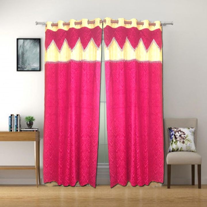 Decor Velvet Fabric Eyelet Simple Pattern Door Curtains (7 /5Feet, Scarlet Red)- Set Of 2,