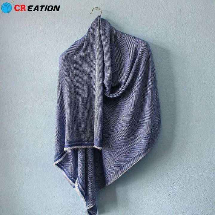Deep Blue Single Layered Check Designed Unisex Shawl