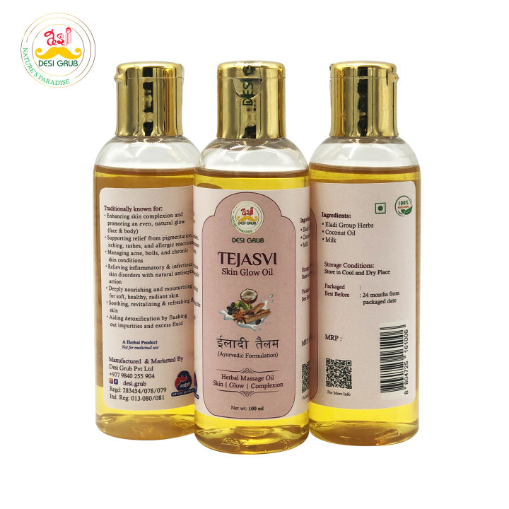 Desi Grub Tejasvi Skin Oil 100ml| Eladi Thailam