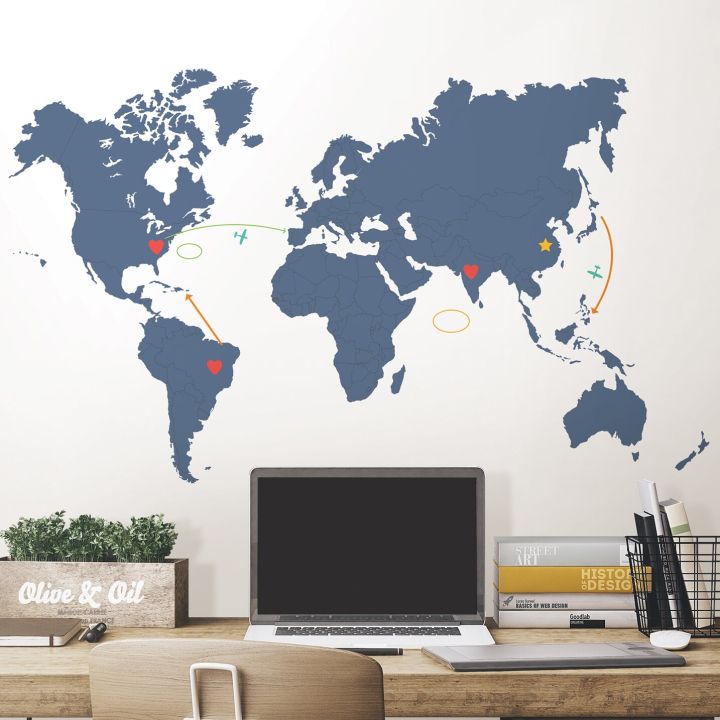 Destination World Map Wall Sticker 110cm(W) x 85cm(H)