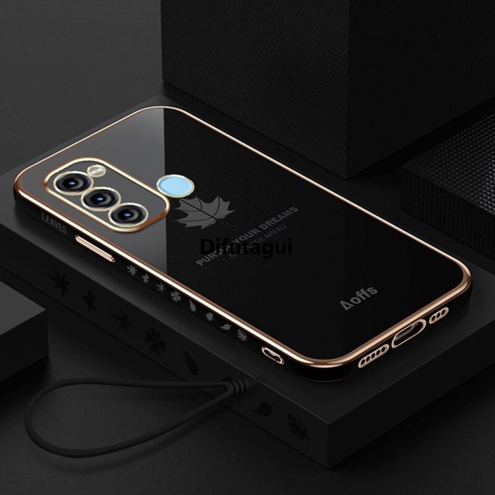 Difutagui New style LECOMES for Itel Vision 3 / Itel S17 Back Cover with Hand Strap Luxury 6D 2025 Plating Shiny Maple Leaf Phone Case Soft Silicone Square Bumper Mobile Cases Phoch