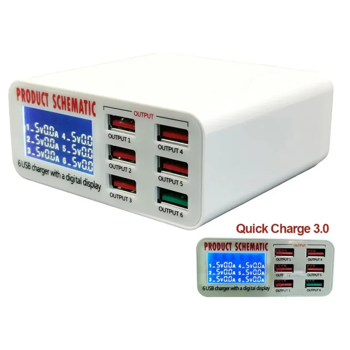 Digital USB Charger 6 Multi Port Fast Charging Station Mobile Phone Fast Charger