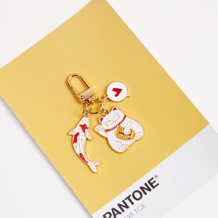 Discount】1pc Maneki Neko Koi Fish Press Lucky metal key chain bag
