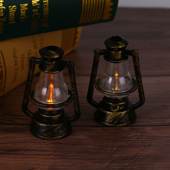 Dollhouse 1:12 Mini Retro Black Kerosene Lamp Doll House Living Scene Decoration Runrui