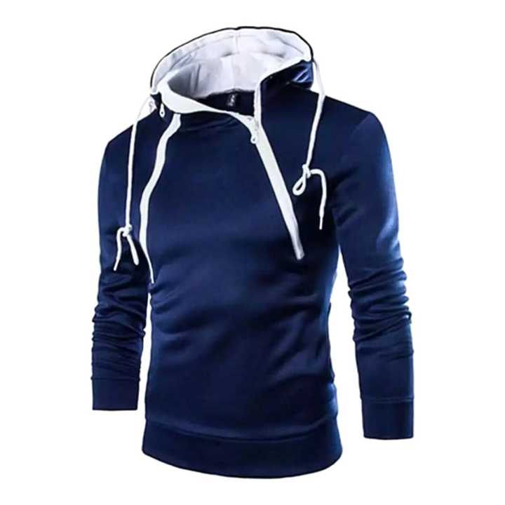 Double zipper Design Navy Blue Hoodie For Men