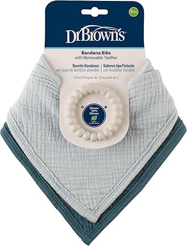 Dr Brown's Bandana Bibs with Removable Beaded Teether, 2-Pack, AC282-P12 / AC283-P12