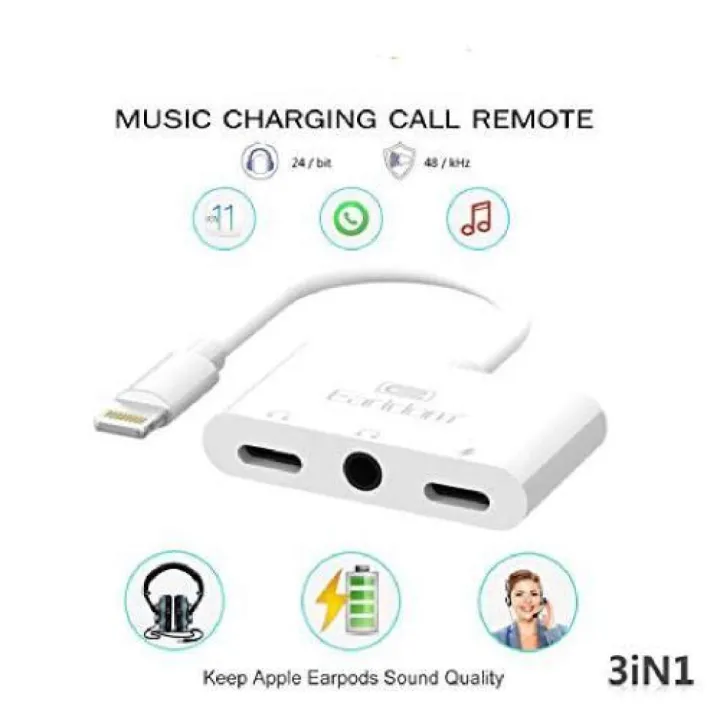 EARLDOM 3 IN 1 HEADPHONE ADAPTER, DUAL LIGHTNING+3.5 MM JACK EARPHONE SPLITTER