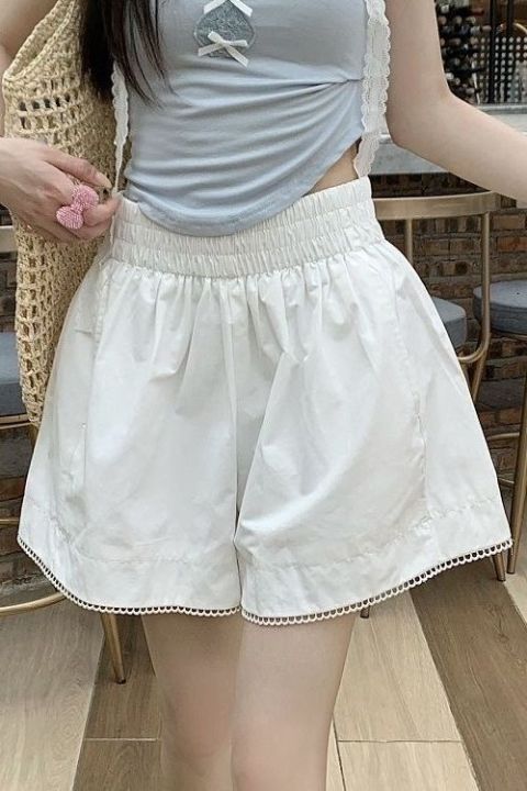 Elastic%20Waist%20Lace%20Shorts%20for%20Women%20Summer%20New%20High%20Waist%20Slimming%20Wide%20Leg%20Pants%20Korean%20Style%20Casual%20Skirt%20Pants%20-%20Image%201