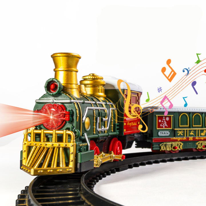 Electric Train Toy Christmas Train Engine Railway Music Santa Claus Snowman Track Set Decor Model Party Toys For Children Gift