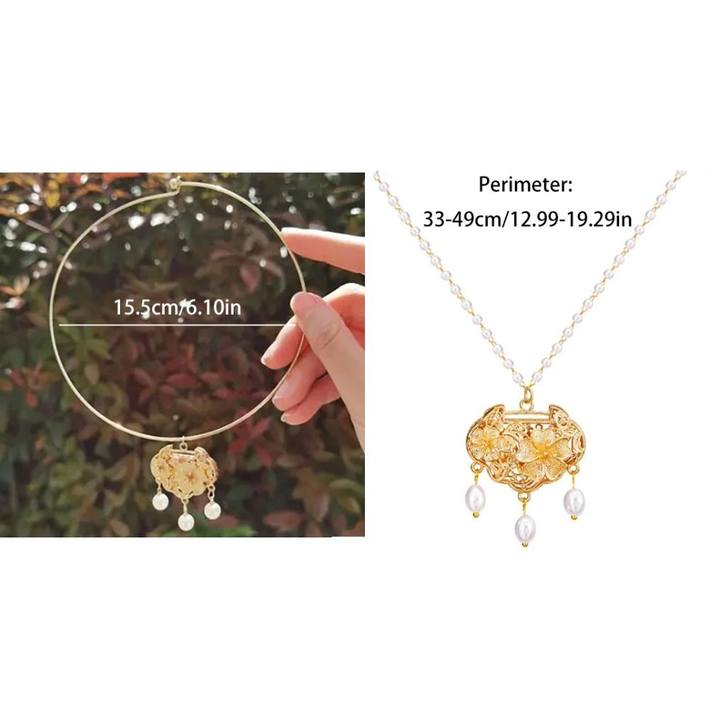 Elegant Chain Choker Vintage Hanfu Necklace Flower Collar Longevity Lock Pendant Chinese Style Tang Dynasty Ruyi Choker Girls