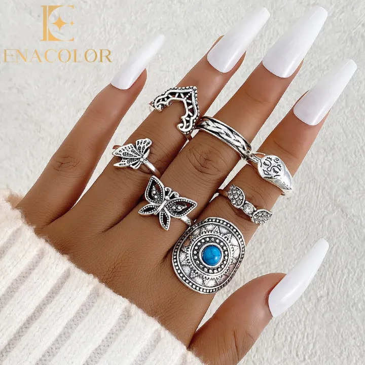 Enacolor%207Pcs/Set%20Retro%20Silver%20Geometric%20Carved%20Butterfly%20Open%20Ring%20Set%20for%20Women,%20Ethnic%20Joint%20Rings%20%20Fashion%20Jewelry%20Accessories%20-%20Image%201