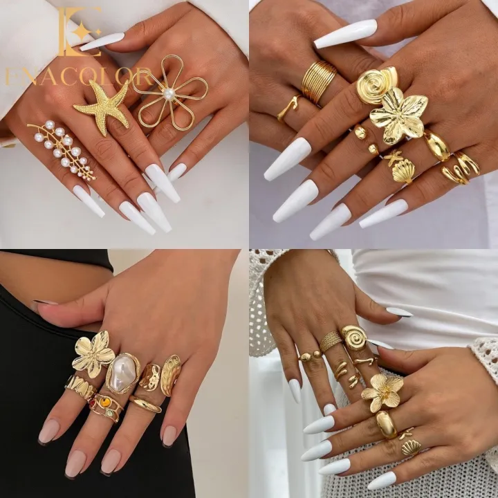 Enacolor%20Retro%20Punk%20Exaggerated%20Irregular%20Geometry%20Ring%20Set%20Gold%20Metal%20Pearl%20Joint%20Open%20Rings%20Adjust%20Jewelry%20Accessories%20Gifts%20New%20-%20Image%209