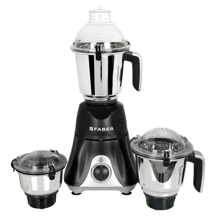 Faber Hilux 550W Blender Mixer Grinder, 3 SS clip lock jars & blades || low-noise copper motor, up to 18000 rpm speed || 2 year comprehensive warranty (FMG HILUX 550 W 3J NERO) Black