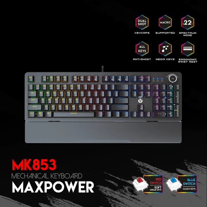 Fantech Maxpower MK853 V2 RGB LED With Wrist Rest Keyboard -Blue Switch