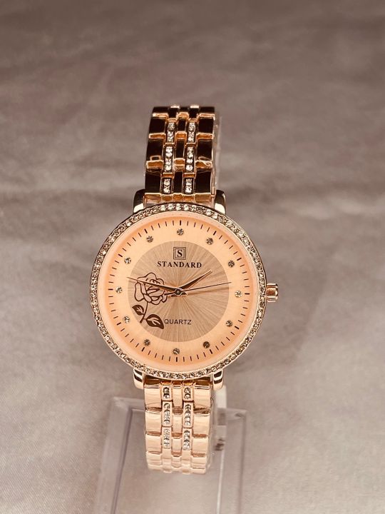 Fashionable Rose Gold Dial And Strap Watch For Women