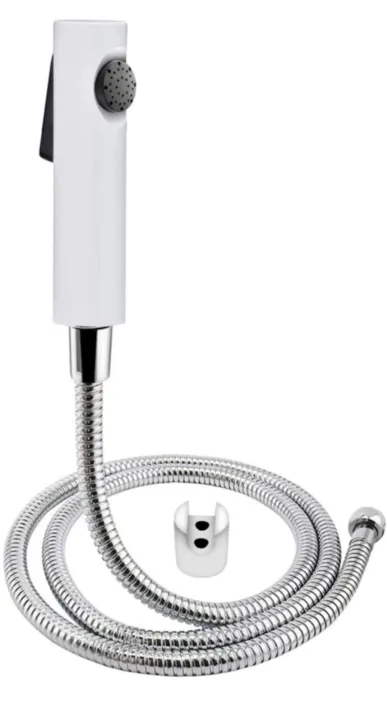 Faucet with 1.25 Meter Flexible Hose Pipe and Wall Hook White Jet Spray for Toilet Polished