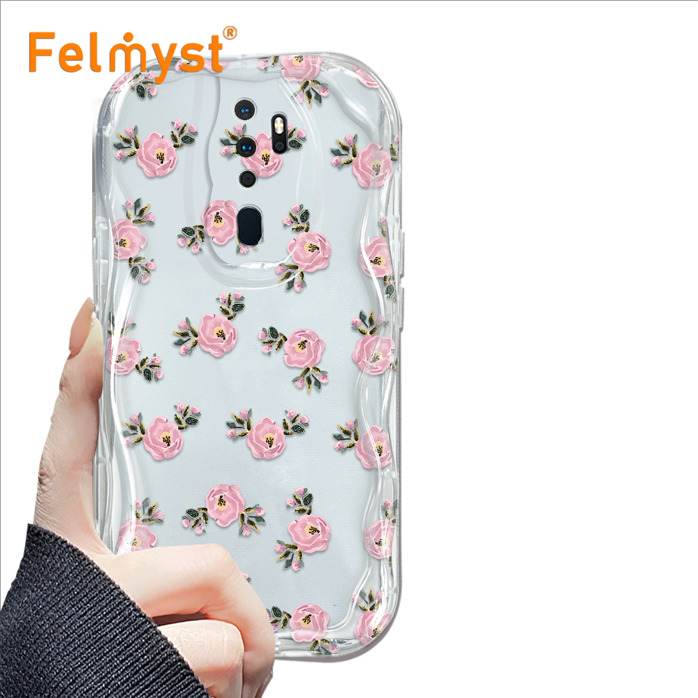 FELMYST for OPPO A5 2020 A9 2020 Back Cover Pink Flowers Pattern Soft Texture Wavy Edge Silicone Phone Case