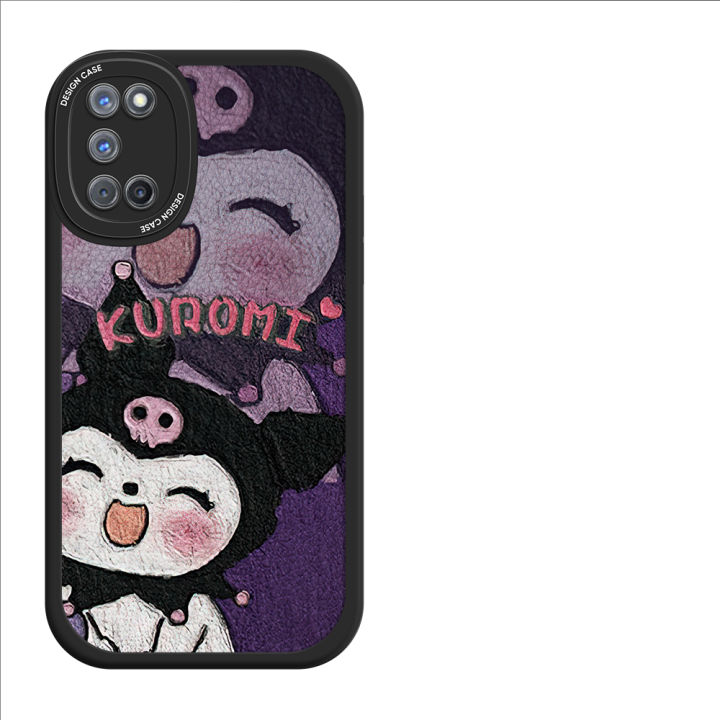 FELMYST for OPPO A52 A92 Back Cover PU Leather Kuromi Pattern Soft Silicone Edge Phone Case