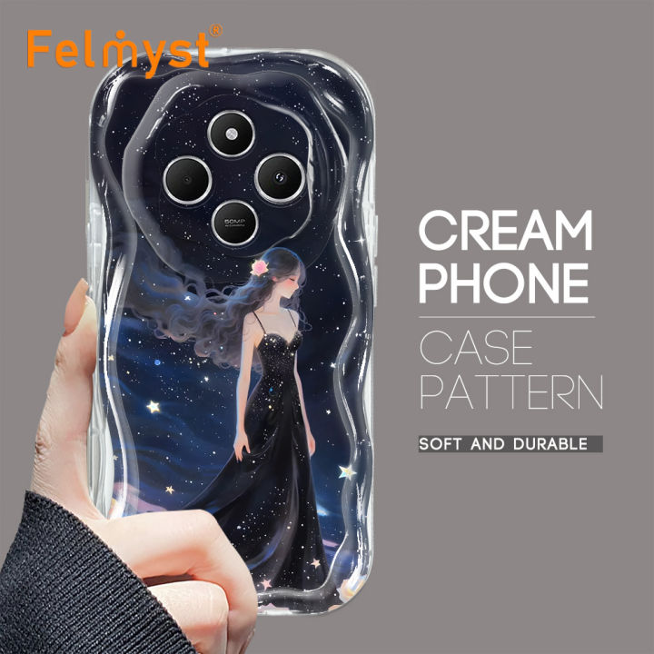 FELMYST%20for%20Redmi%2014C%20Back%20Cover%20Starry%20Sky%20Black%20Skirt%20Girl%20Cream%20Texture%20Wavy%20Edge%20Soft%20Silicone%20Phone%20Case%20-%20Image%204
