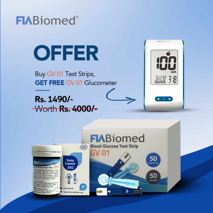 Fiabiomed Blood Glucose Test Strips GV 01 with Lancets (50 Strips + 50 Lancets) | Fast, Accurate Diabetes Monitoring Kit for Home & Professional Use | For GV 01 Glucometer