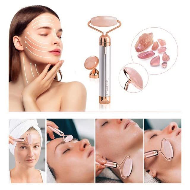 Finishing Touch Flawless Contour Facial Roller & Massager Vibrating Rose Quartz Battery Operated