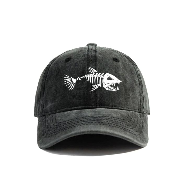 Fishbone Baseball Cap Summer Distressed Dad Hats Men Outdoor Fishing Skeleton Fish Bone Caps MZ-496