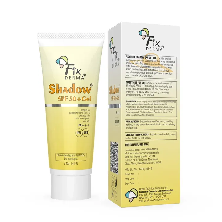 Fix Derma Shadow Sunscreen For Oily Skin SPF 50+ Gel 75 gm | Acne Prone