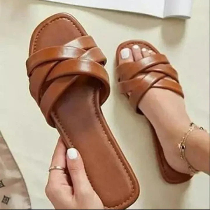 Women's%20Flat%20Sandal%20Summer%20Breathable%20Hollow%20out%20Slip-On%20Casual%20Comfortable%20PU%20Leather%20Sandals%20-%20Image%201