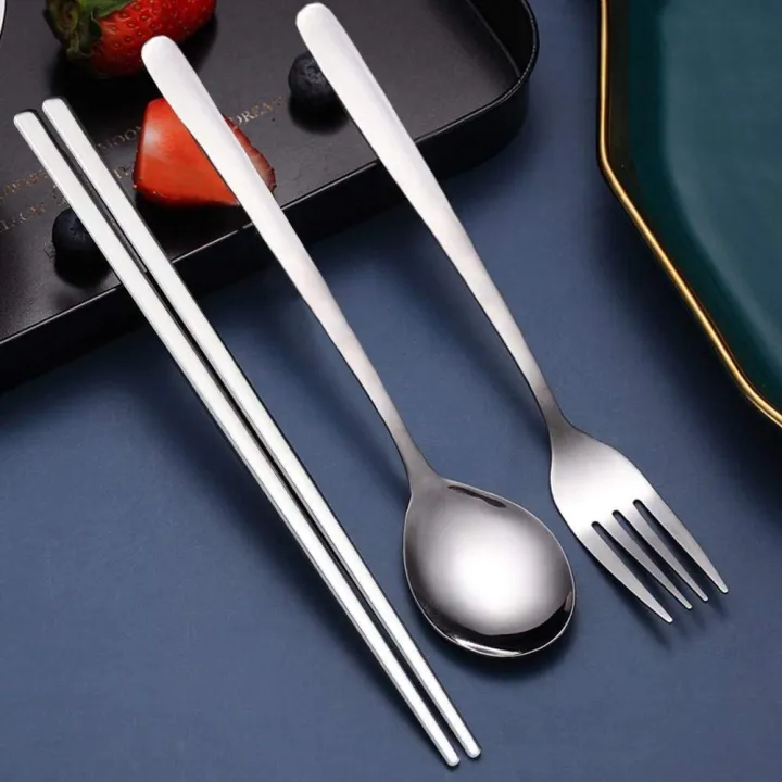 Flatware%20Set%20%7C%20%20Fork,%20Chopstick%20and%20Spoon%20Silverware%20Korean%20Stainless%20Steel%20Korean%20Chopsticks%20Spoons%20and%20Fork%20Set%20-%20Image%201
