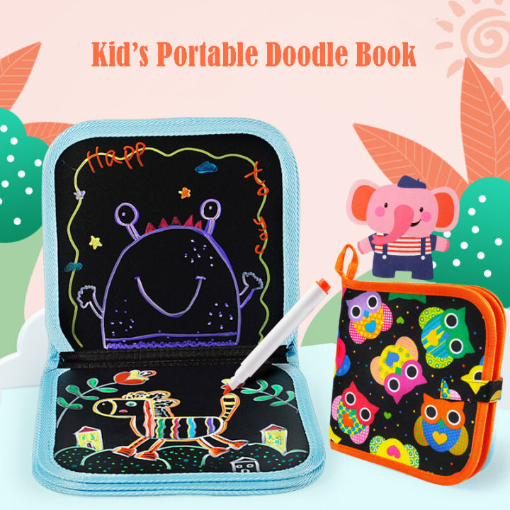 FLIPPED Doodle Book Drawing Pad Portable Reusable Erasable Writing Board Arts Crafts Toys Painting Kits for Kid Toddlers Activity Toy On Travel Airplane Boys Girls Age 3+