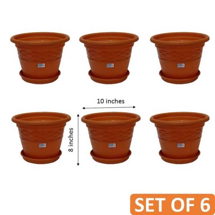 Flower%20Plastic%20Pot%20/%20Gamala%2010%20Inches%206%20Pcs%20Set%20With%20Base%20Plate%20-%20Image%201