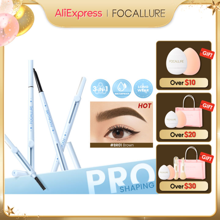 FOCALLURE 3 Colors Eyebrow Pencil Waterproof Long-lasting 3 In 1 Ultra Fine Triangle Eye Brow Makeup Cosmetics
