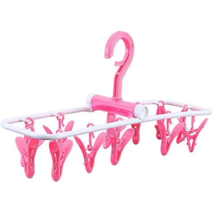 Folding Portable Laundry Hanger with 12 Clips Drying Rack for Socks&Lingerie Plastic Clothes Pins