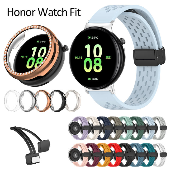 For Honor Watch fit strap active elegant 44mm case diamond frame tempered glass screen protector hard cover smart watch band straps