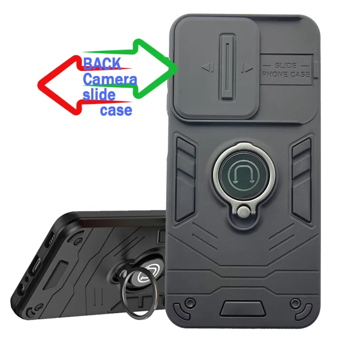 For Redmi Note 12 Pro 5G Back Cover | Dual Layer Armor Defender Full Body Protective + PC Hybrid Kickstand Back Case <Cam-Slide>