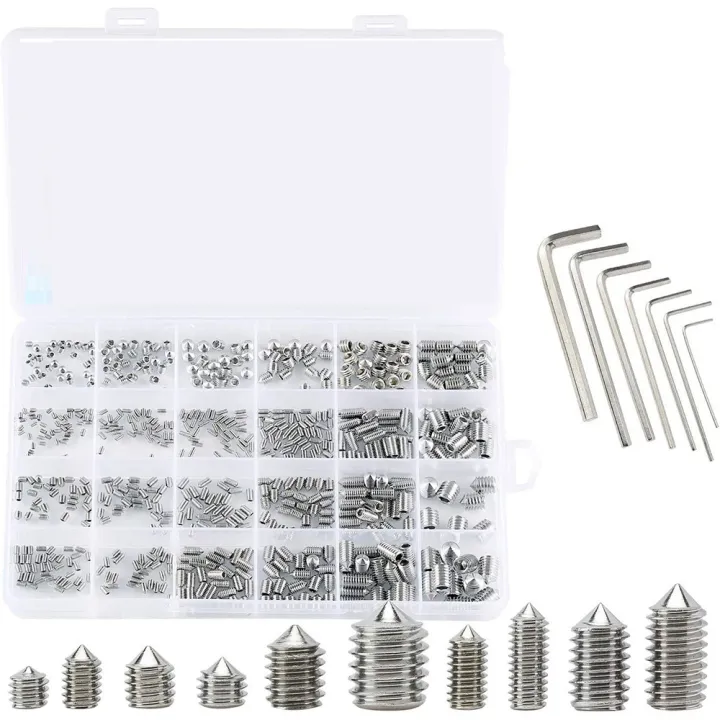 FORIDE 667Pcs Hex Hexagon Socket Cone Point Set Screw Assortment Kit M2 M2.5 M3 M5 M6 M8 Grub Screw with Hex Key