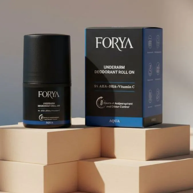 FORYA - Underarm Deodorant Roll On - 40ml Aqua Fragrance [ 5% AHA + BHA + Vitamin C ]