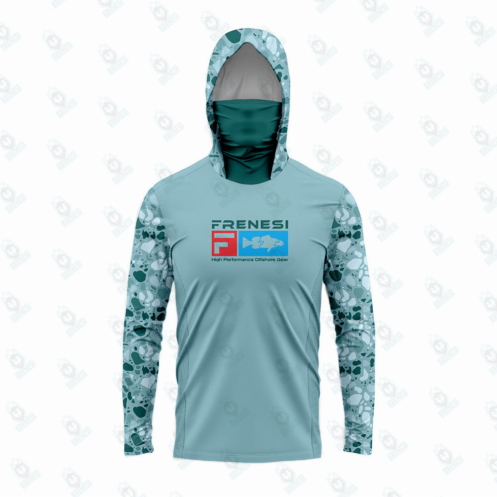 Frenesi Hood Face Cover Fishing Shirt Men's Long Sleeve Fish Hunting Hoodie Breathable UV Protection UPF50+ T-shirt Apparel