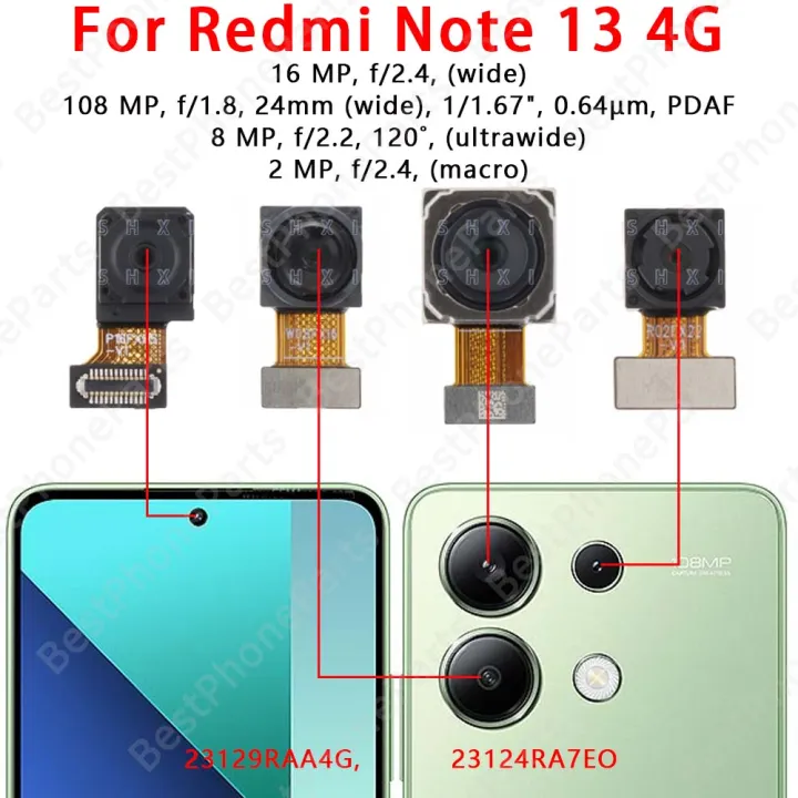 Front and Rear Back Camera For Xiaomi Redmi Note 13 4G Main Facing Camera Module Flex Cable Replacement Spare Parts