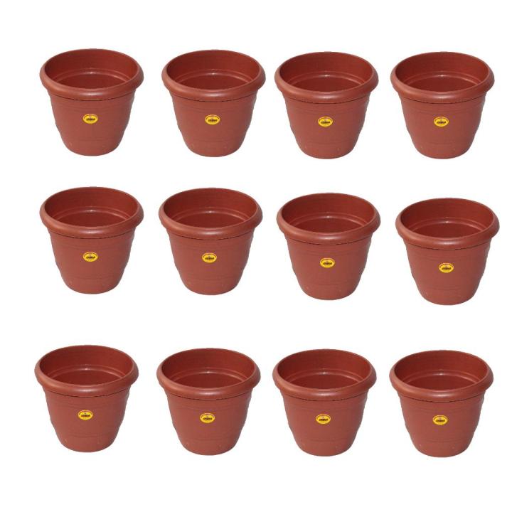 Gem Brown Plastic 10" Diameter Flower Pot - 8002 - Medium - 12pcs set