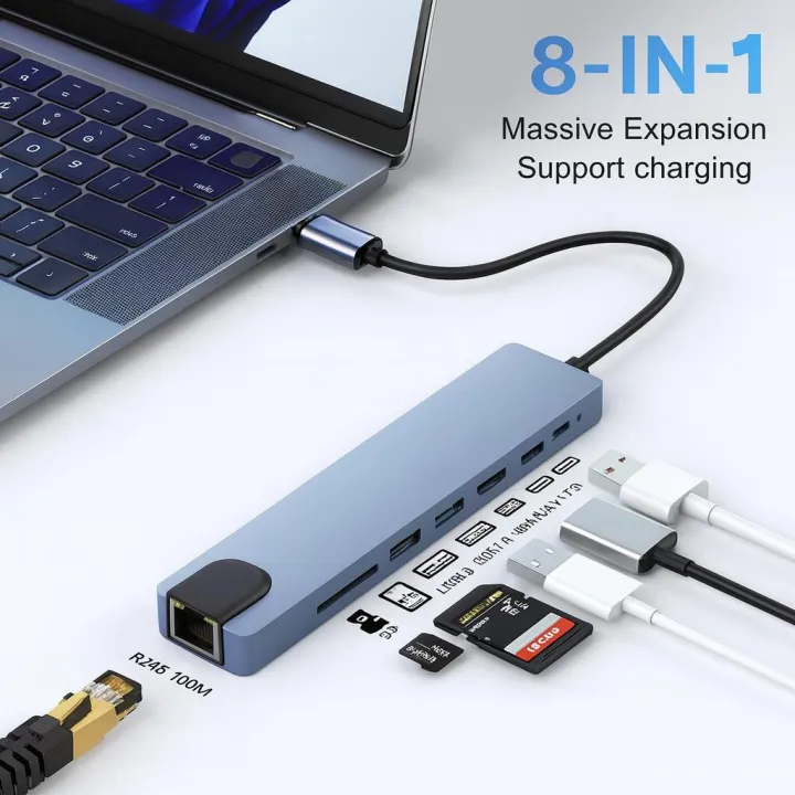 Gigaware 8 in 1 USB Type C Hub Multifunctional Adapter