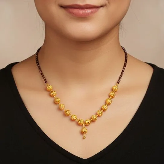 Gold Plated Ball Mangalsutra With Black Beads Lari Mangalsutra For Women | 50cm Long Ball Haar Gold Looking Mangalsutra Gold Design Mangalsutra Gold Polished Mangalsutra For Married Women Indian Mangalsutra Simple Design mangalsutra Ball Loop Mangalsutra