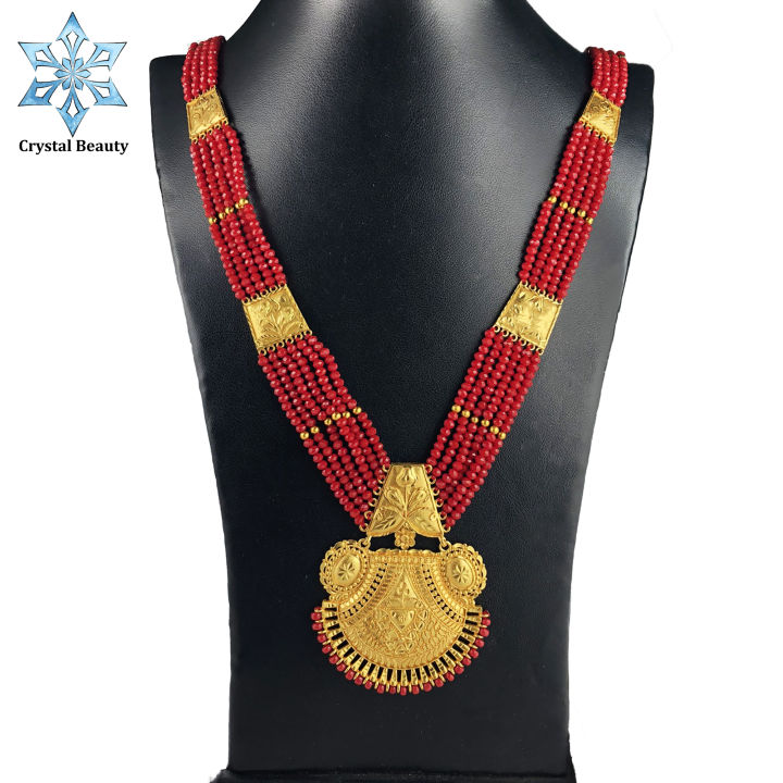 Gold Plated Panchadhatu Red Crystal Mangalsutra For Women With Box Packing