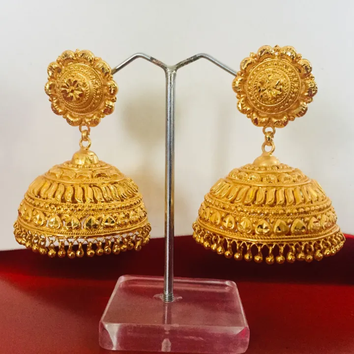 Gold Plated Pinjada Design Big Pachadhatu Earrings For Women(2 Pieces)
