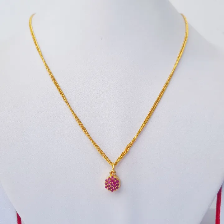 Gold Plated Ruby Pendant Design Chain Necklace For Women